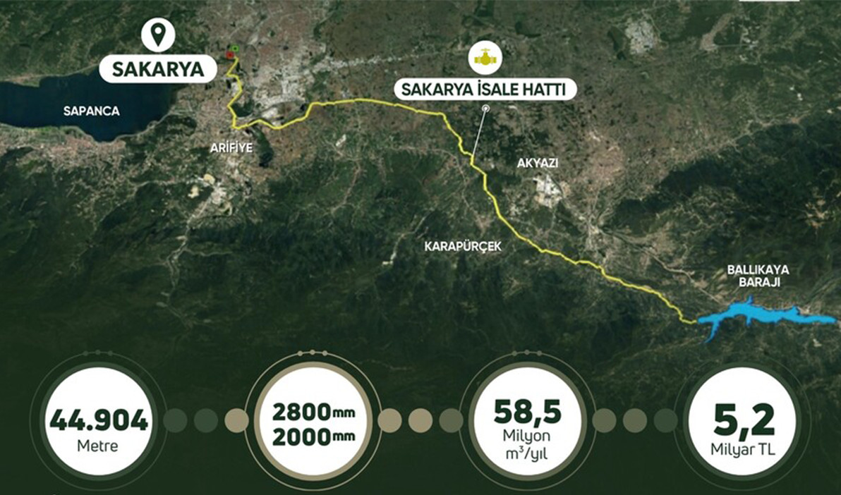 Devlet Su İşleri (DSİ) Genel Müdürlüğü ile Sakarya Büyükşehir Belediyesi arasındaki protokol kapsamında hayata geçirilen proje, 5,2 milyar liralık yatırım bedeliyle dikkat çekiyor. 44,9 kilometre uzunluğundaki isale hattının yanı sıra proje kapsamında; 8 bin 950 metreküplük klor temas tankı, 22 bin 500 metreküplük temiz su deposu ve gerekli sanat yapıları inşa edilecek.