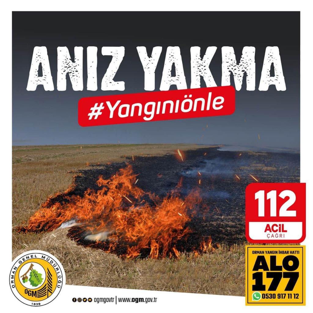 “Tarımsal üretimin ana kaynağı olan toprağın biyolojik, kimyasal ve fiziksel yapısının ve çevrenin korunarak, doğal denge içerisinde toprağın verimliliğinin sürdürülebilirliği için gerekli önlemleri almak başlıca görevimiz. Hububat tarımında, hasadı takiben toprağın yapısına ve çevreye vereceği zarar göz önüne alınarak, anız yakılmasının önlenmesi için denetimlerimizi sürdürmekte ve tedbirler almaktayız. İl Müdürlüğümüz ekipleri tarafından, 2024 yılında anız yakılmasını önleme ile ilgili çalışmalarımız yıl boyunca sürdürülmekte olup, İl/İlçe Tarım ve Orman Müdürlüklerimizce çiftçi eğitimi programlarında geniş bir şekilde anız yangınlarına yer verilmekte, zararları etraflıca anlatılmaktadır. Yapılan eğitim-yayım çalışmalarında yerel yönetim imkanları ve sivil toplum örgütlerinin katkıları sağlanarak çevreye duyarlılık yaygınlaştırılmaktadır.