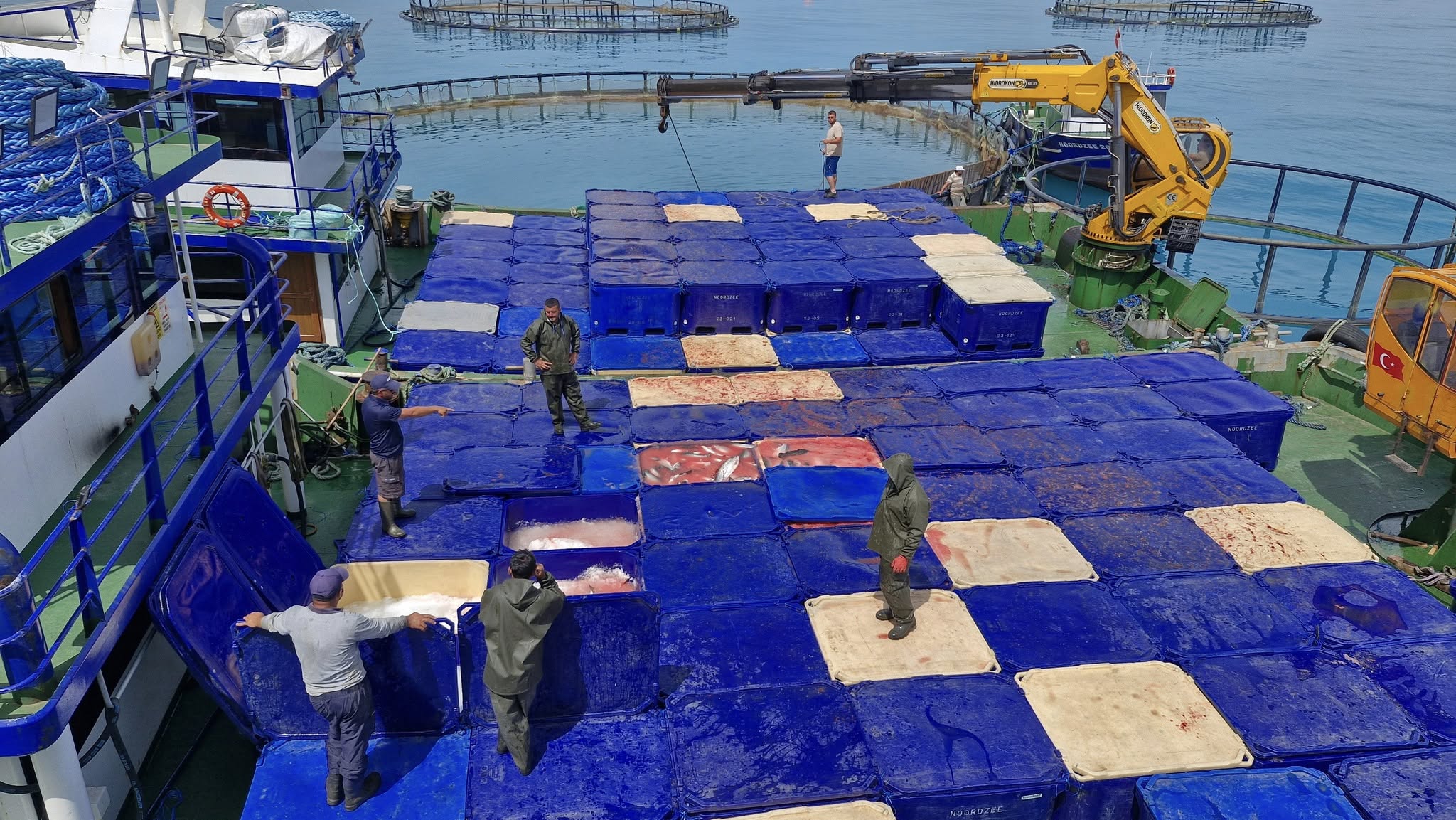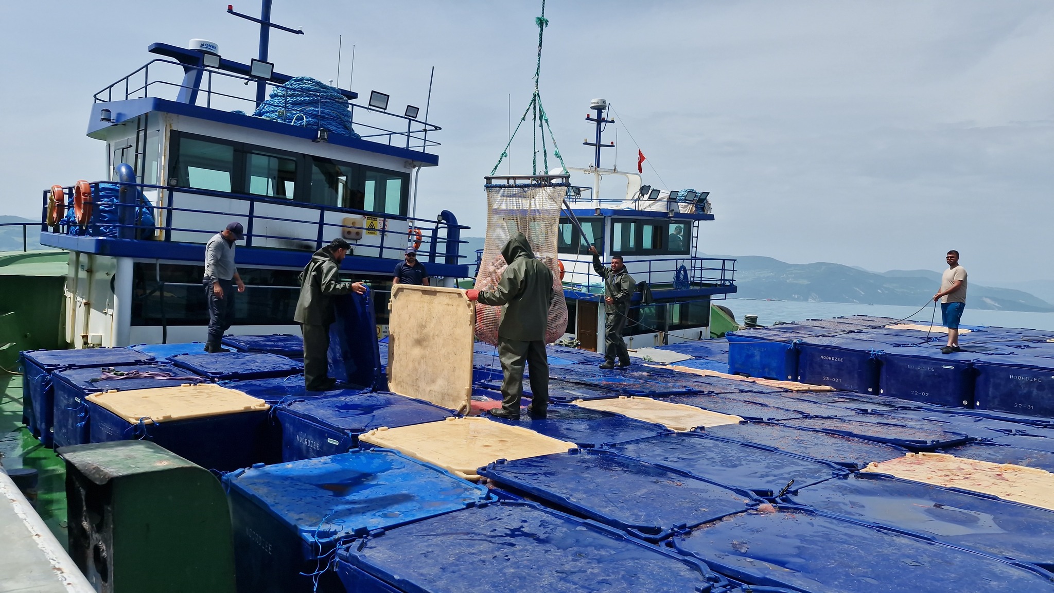 Samsun‘un Yakakent ilçesinde, Karadeniz’de kafeslerde üretimi yapılan Türk somonunun hasadına başlandı.