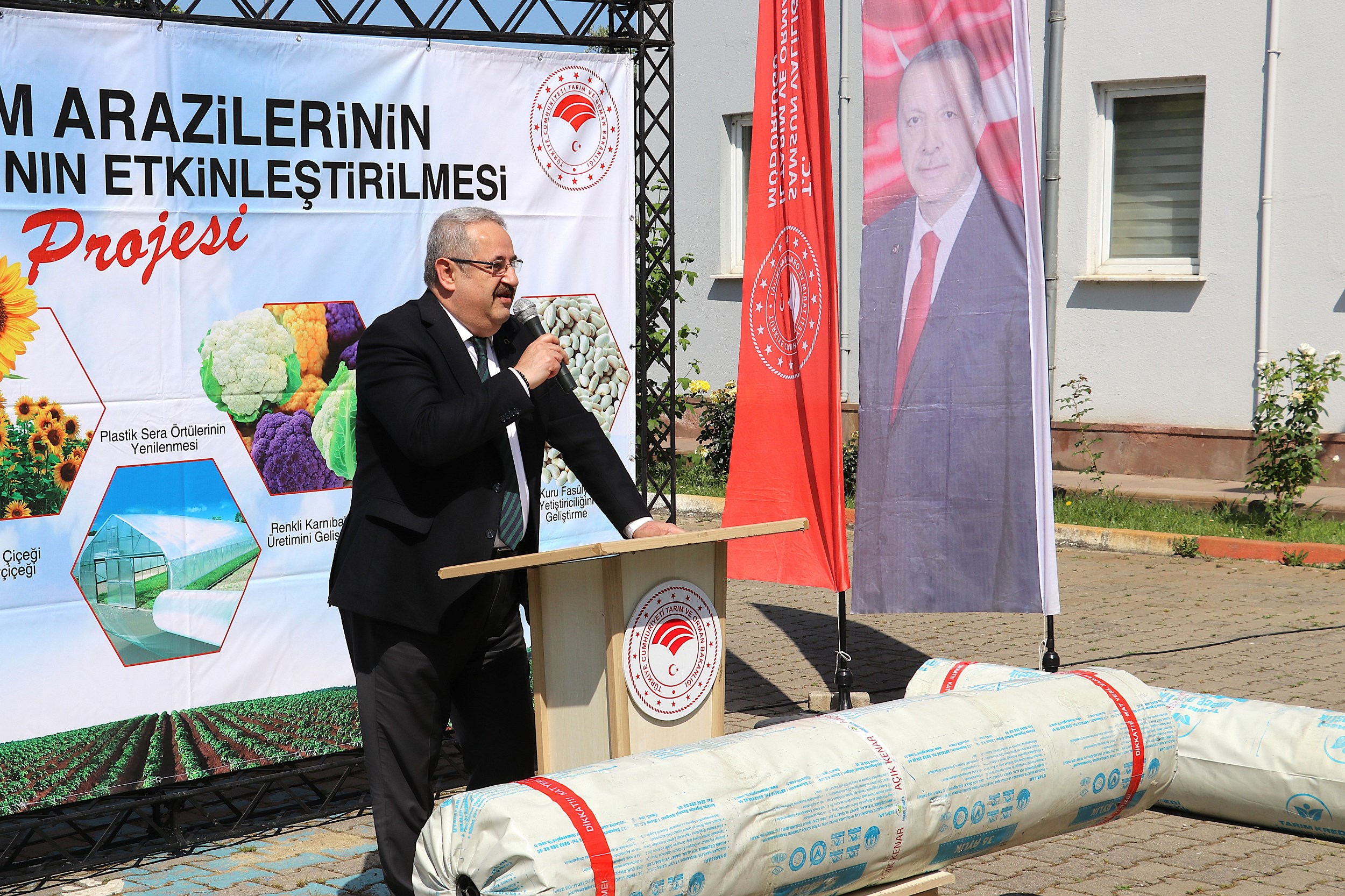 Tören çiftçilere sera naylonlarının teslim edilmesi ile sona erdi.