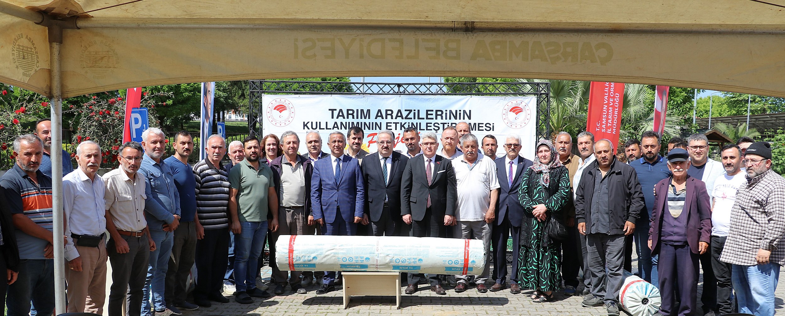 Çarşamba İlçe Tarım ve Orman Müdürlüğü yerleşkesinde ‘Alternatif Üretim Yöntemlerinin Geliştirilmesi Projesi’ kapsamında üreticilere sera naylonu teslim töreni düzenlendi.