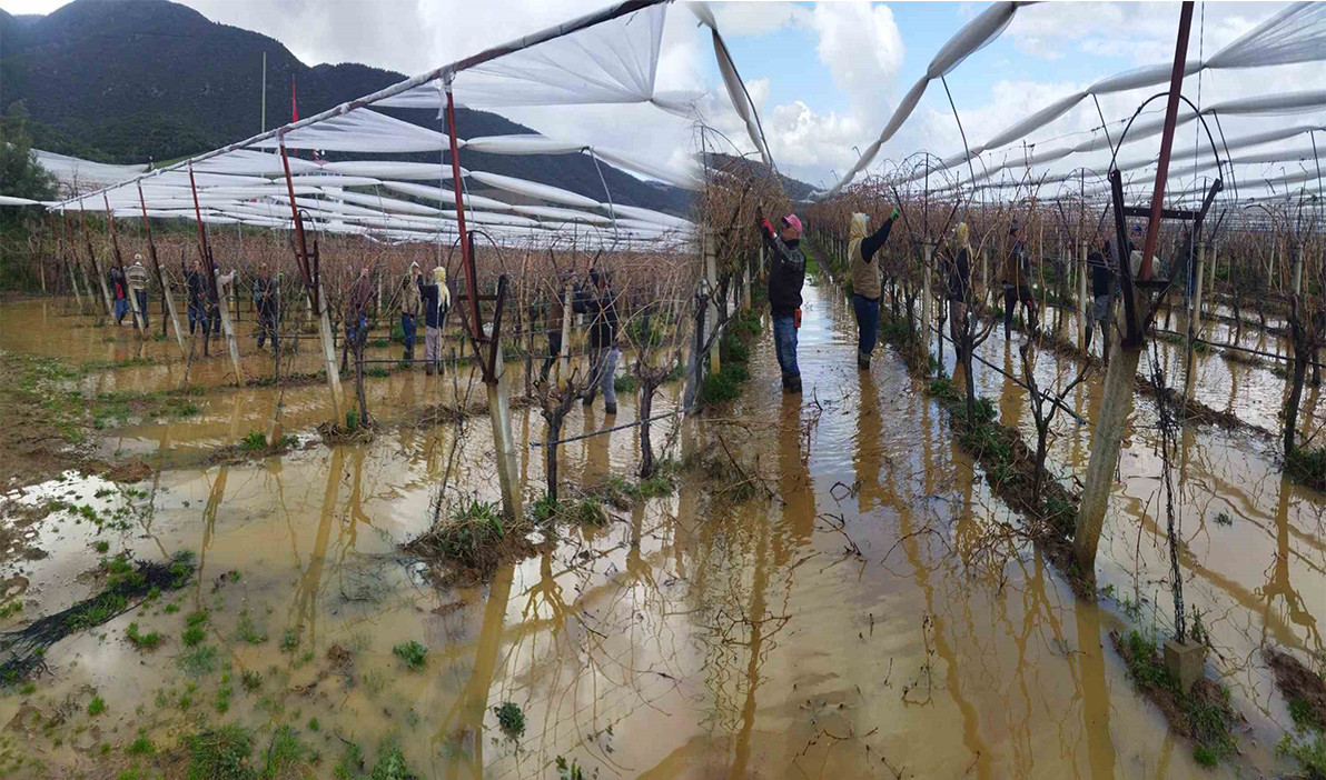 Bağların su altında kalması yetmezmiş gibi, üreticiyi bir de “erken uyanan doğa” tedirgin etti. Mevsim normallerinin altında seyreden sıcaklıklara ve yağışa rağmen, ilçedeki bazı badem ağaçları “yalancı bahara” aldanarak çiçek açtı. Bağlarda çalışırken karşılaştıkları manzara karşısında şaşkınlıklarını gizleyemeyen işçiler, çiçek açan ağaçları “kış hatırası” olarak fotoğrafladı.