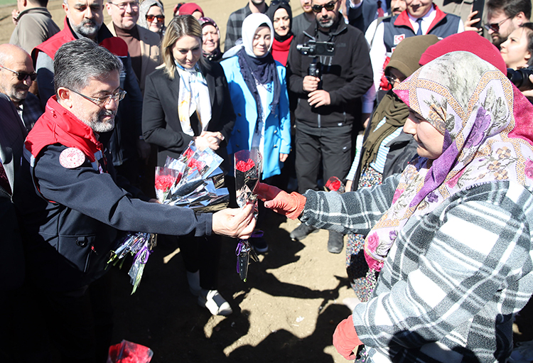 Kadınların 8 Mart Dünya Kadınlar Günü’nü kutlayan Yumaklı, çiçek takdim etti.