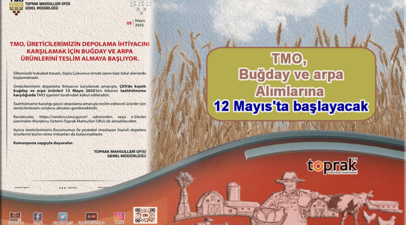 Toprak Mahsulleri Ofisi (TMO), Çiftçi Kayıt Sistemi’nde (ÇKS) kayıtlı buğday ve arpa ürünlerini 12 Mayıs’tan itibaren almaya başlayacak.