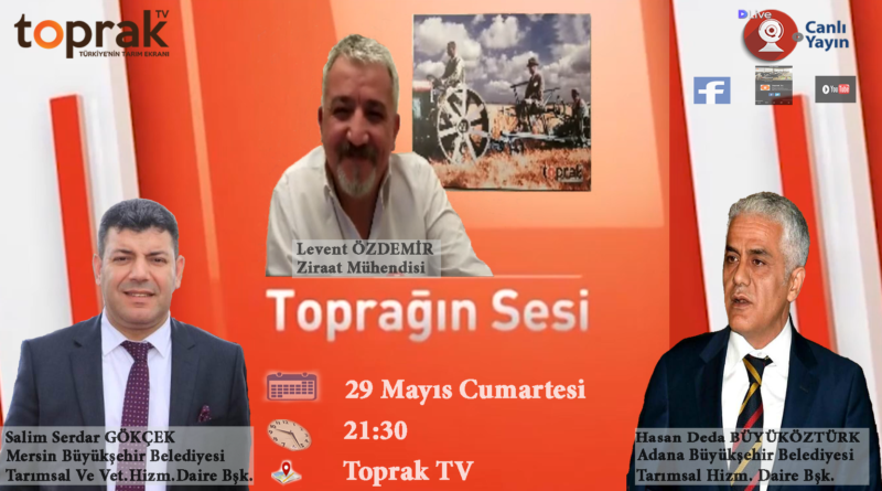 Toprağın Sesi Programının bu hafta konukları; Adana Büyükşehir Belediyesi Tarımsal Hizmetler Daire Başkanı Sayın, Hasan Deda BÜYÜKÖZTÜRK ve Mersin Büyükşehir Belediyesi Tarımsal Ve Veteriner Hizmetleri Daire Başkanı Sayın, Salim Serdar GÖKÇEK.