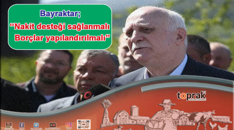Devletten üreticilere nakdi yardım ve girdi desteği beklediklerini anlatan Bayraktar, “Tarım ve Orman Bakanlığımız yeni bir çalışma başlattı, üretici maliyetleri üreticiye ödenecek şeklinde bir çalışma yapıldı. Bunu da olumlu buluyoruz. ‘Tarım müdürlükleri marifetiyle üretici maliyetleri hesaplanacak ve bunlar üreticilere ödenecek.’ denildi. Bunun kısa bir süre içinde gerçekleşmesi, üreticinin destekle kısa zaman içinde buluşması fevkalade önemli. Üreticimize nakit desteği sağlanmalı, kredi borçları yapılandırılmalı. Bunu önemsiyoruz.”dedi.