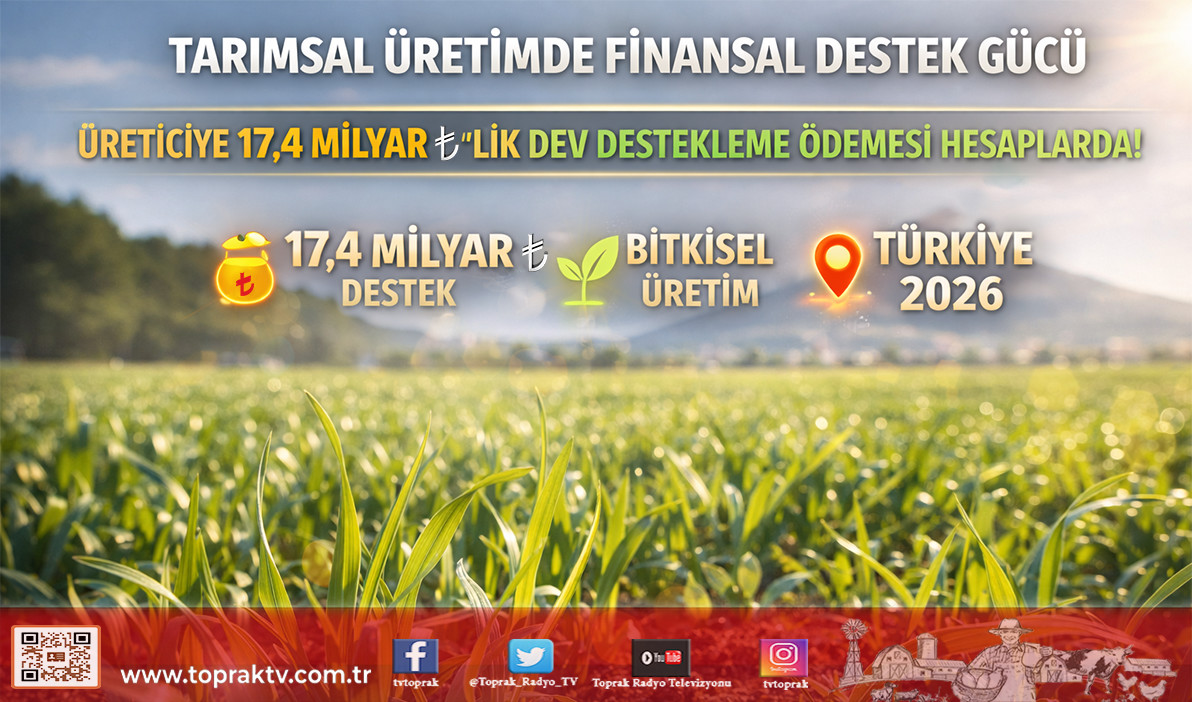 Nisan ayının bu ilk günlerinde çiftçimizin cebine giren 17,4 milyar ₺‘lik bu büyük kaynak, üretim heyecanını ve bereketini artıracak stratejik bir adımdır. Bitkisel üretimden hayvan gen kaynaklarımızın korunmasına kadar geniş bir yelpazeye yayılan bu ödemeler, tarımsal sürdürülebilirliğin en güçlü finansal dayanağıdır. Toprak TV olarak, alın terini toprağa mühürleyen ve bu desteklerle üretimini şahlandıran tüm çiftçilerimizin yanındayız.