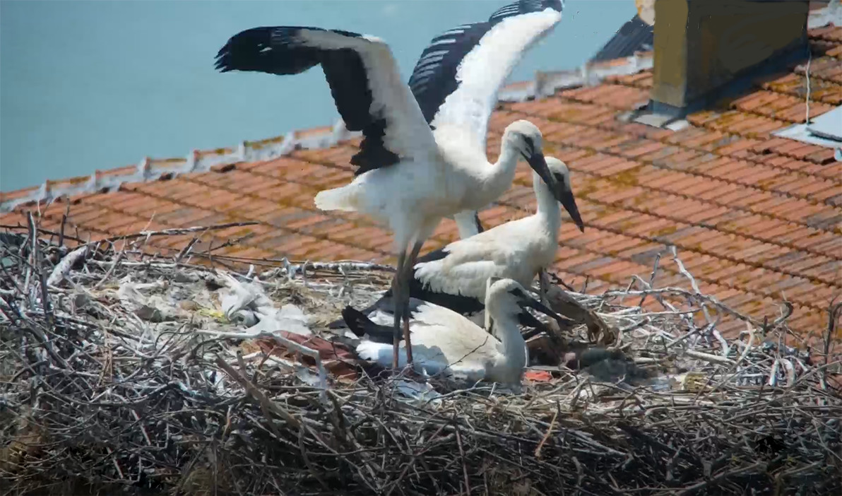 Her yıl Afrika’dan 7 bin kilometrelik zorlu göç yolculuğunu tamamlayarak Adem Yılmaz’ın kayığına ve yuvasına dönen Yaren Leylek’in bu yılki gelişinin ardından, eşi Nazlı ile birlikte kuluçkaya yatmışlardı. Şimdi o küçük yumurtalardan çıkan yavrular, hızla büyüyerek bağımsızlıklarını ilan etmeye hazırlandıklarını gösteriyor.