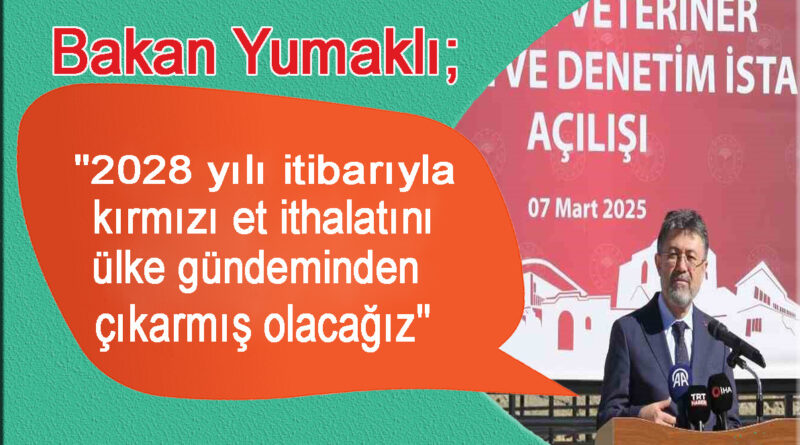 Tarım ve Orman Bakanı İbrahim Yumaklı, kırmızı et üretiminin ülkedeki ihtiyacın yüzde 95’ini karşıladığını belirterek, “2028 yılı itibarıyla kırmızı et ithalatı konusunu ülke gündeminden çıkarmış olacağız inşallah” dedi.